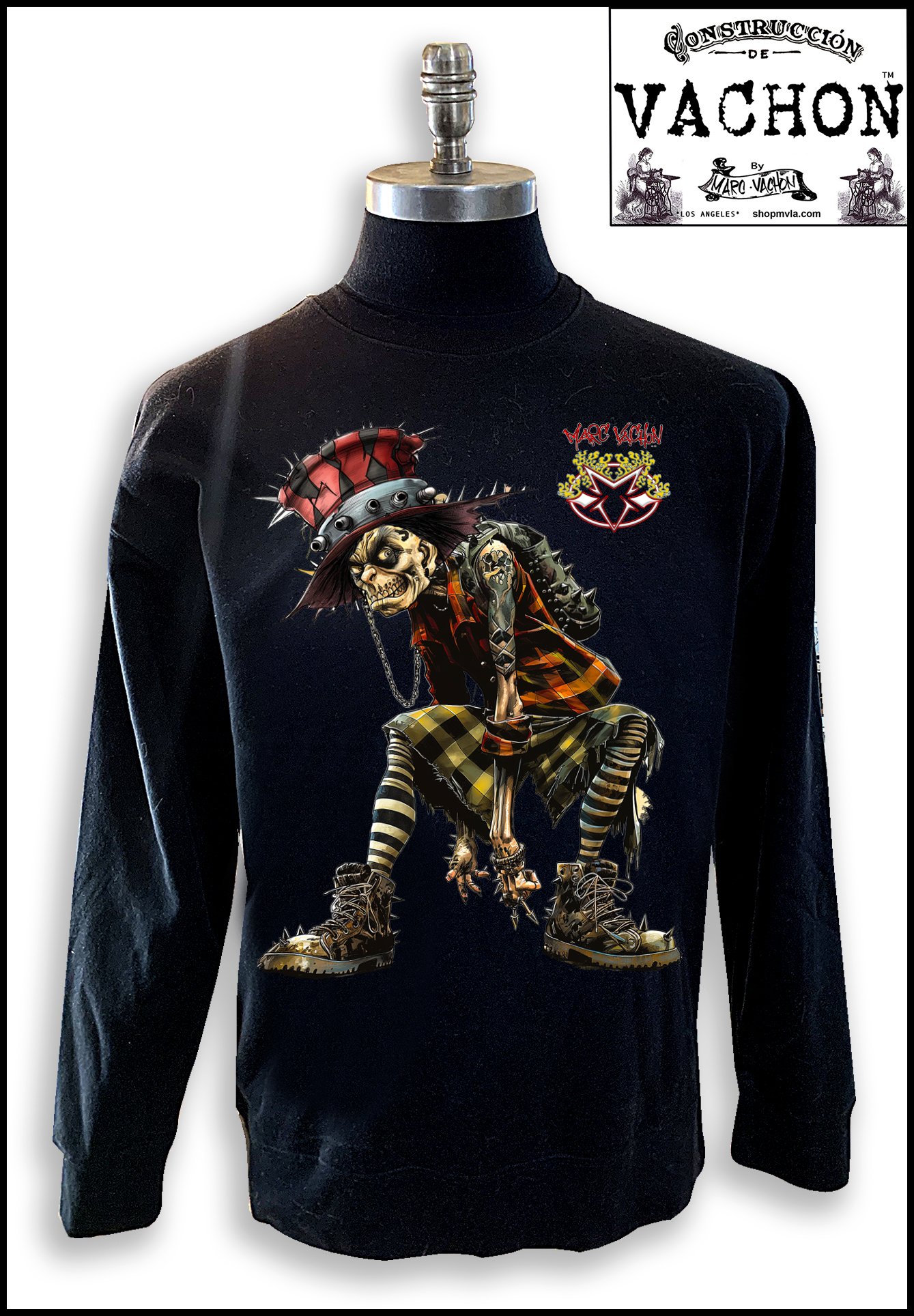 This is the Black long-sleeved crewneck sweatshirt available in all sizes.