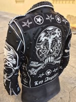 Created in L.A., by MV himself, his customized collection of jackets are all hand studded and hand painted. Please allow 2-4 weeks for shipment.