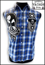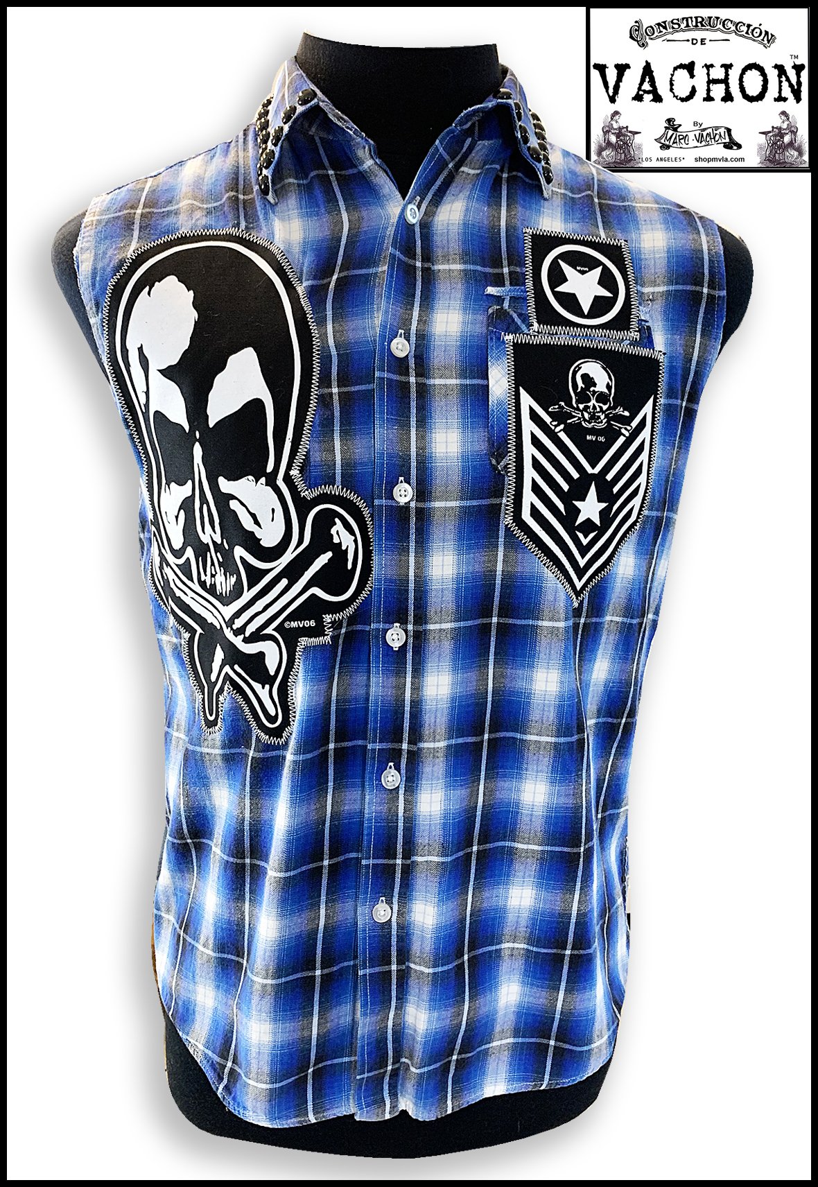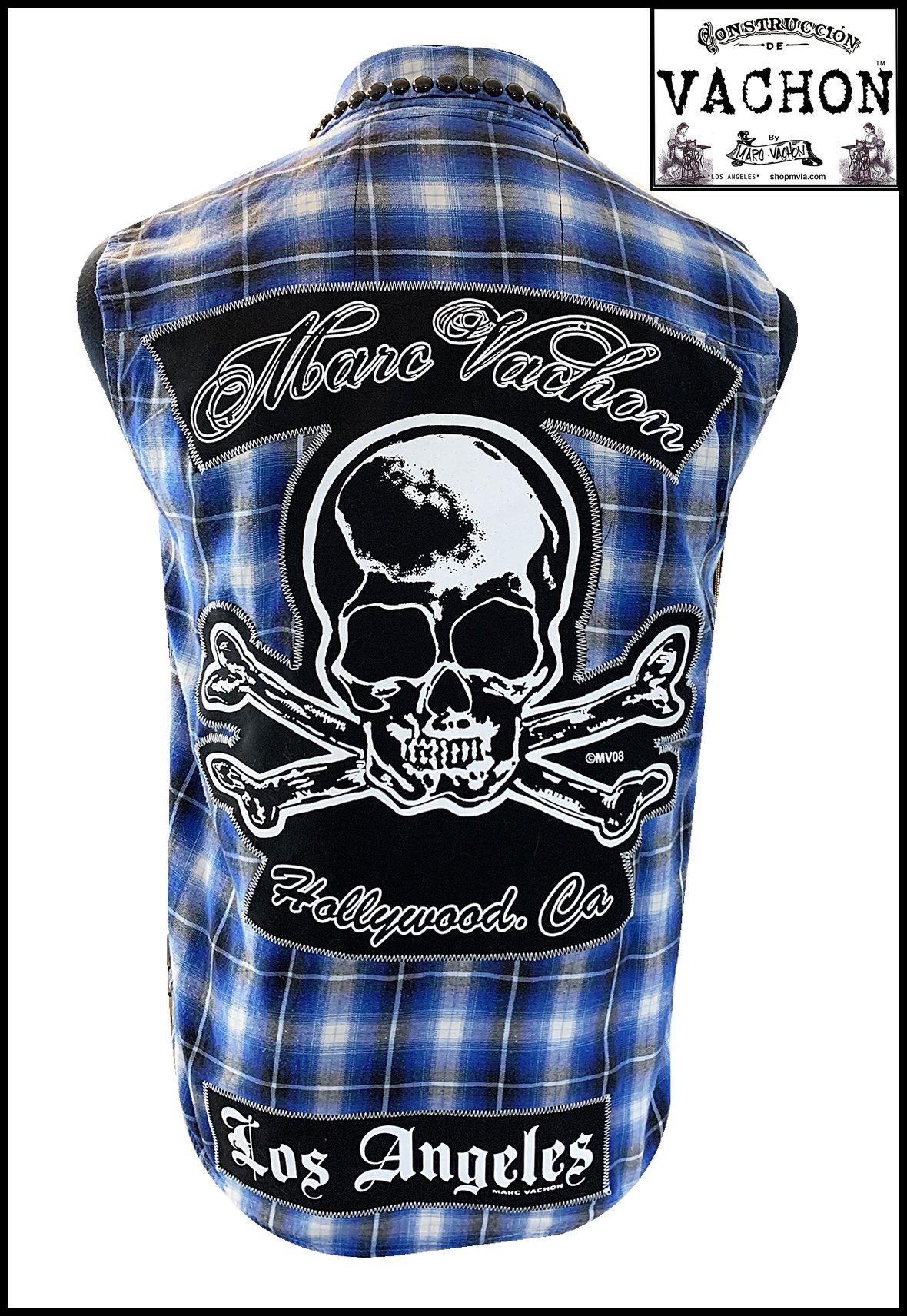 Marc Vachon Custom Blue sleeveless Flannel shirt Size Large