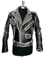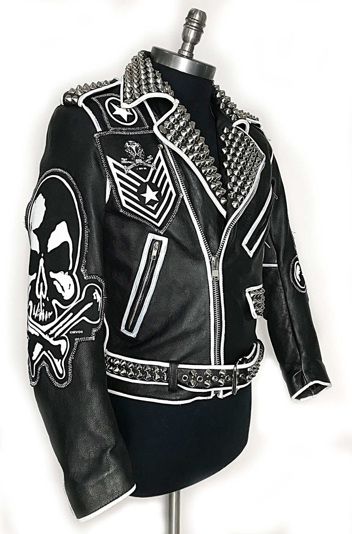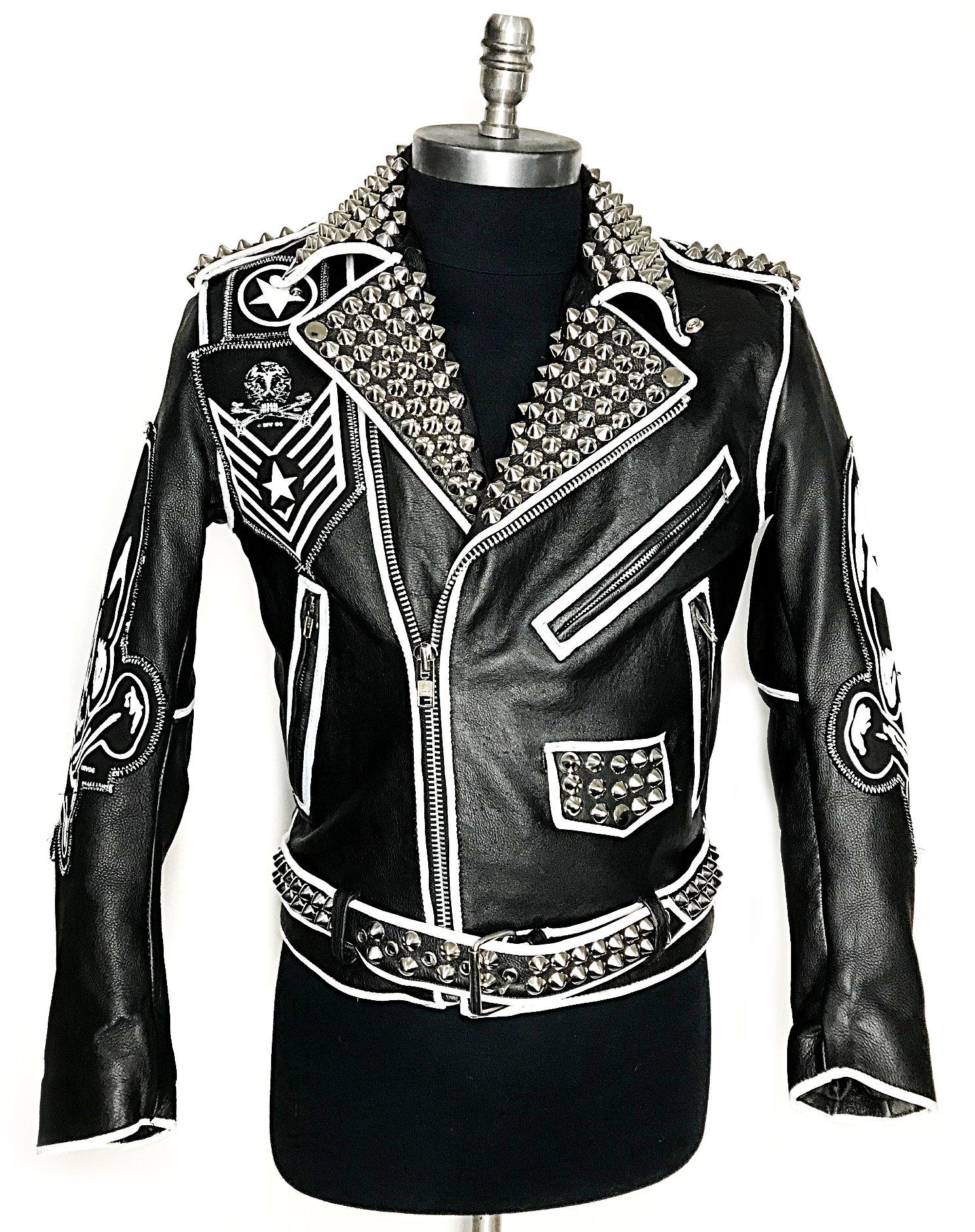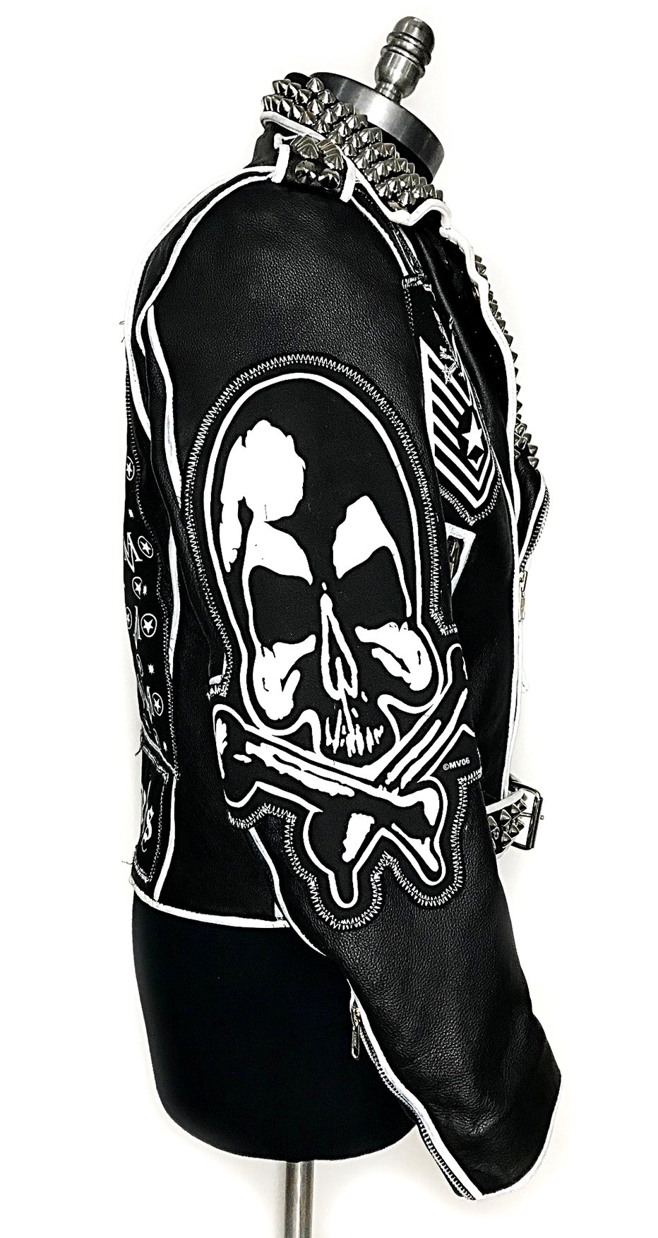 We are raiding the Hollywood studios vault and here is jacket #4. This is that MV old school Evileyes Monogram style leather . This one feature all the classic patches and hand studding for days! The Silver studding resembles those of true classic MV piece and have such a cool suttle look!