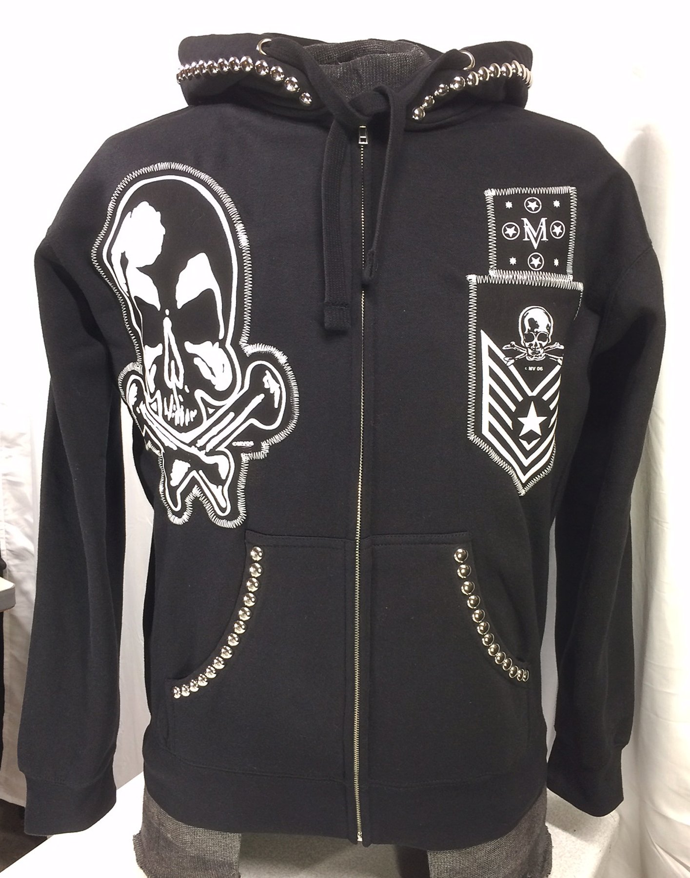 Marc Vachon Fork and Devil Patched and Studded Zip Hoodie