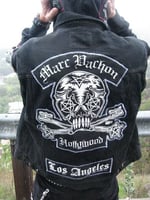 Thanks for checking out one of our longest running premiere pieces in he MV collection. The are all made in Hollywood California with no complaints just 100% Rock N Roll! This Black Denim vest is a must have and ready to rock from the street to the stage! This vest features the MV cutout Keybone patch on the back along with the Hollywood patch as well as the MV army stripe on the front.