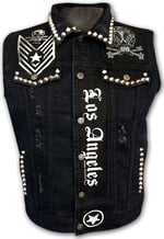 Thanks for checking out the all new Limited Edition MV Sargeant at Arms Black Denim Vest. We have made only a few of these rare and limited back patches available to you now. Here's a chance for you to add a BadAss piece to your MV collection that will set you miles apart from the crowd! This vest also feature those additional MV Classic patches that you know so well. The silver hand studding gives this vest that vintage Punk Rock N Roll timeless look and feel.