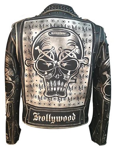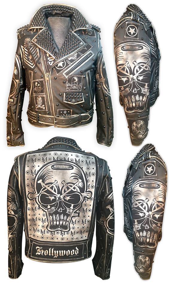 MV creates the ultimate custom painted leather jackets. The EVIL EYES leather is studded, patched, and sewn in L.A.. All black studs make this one stand out. Please allow 4-6 weeks for shipment.