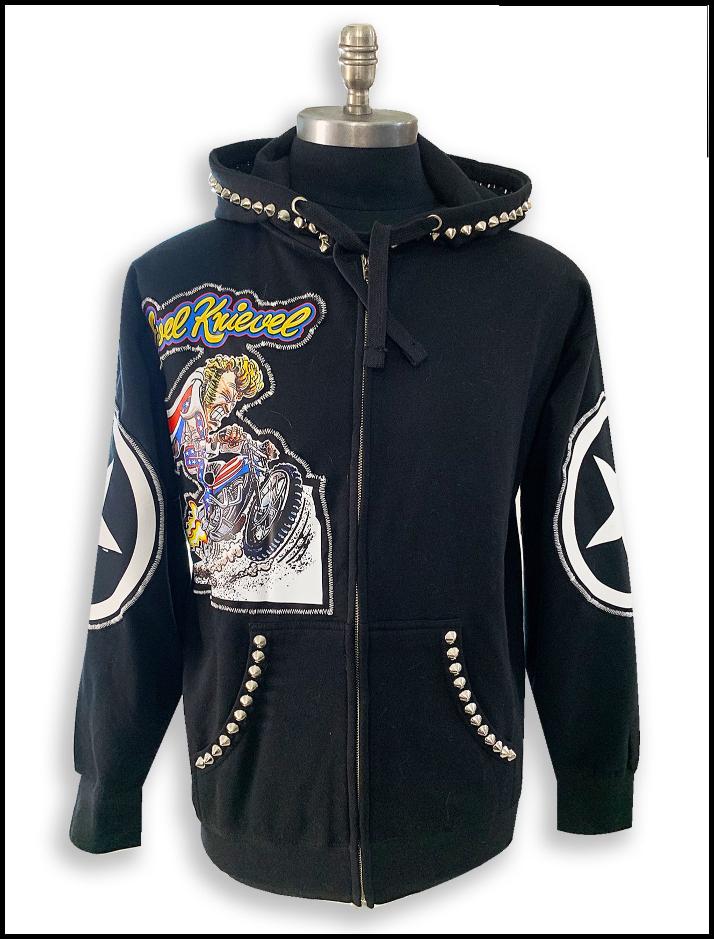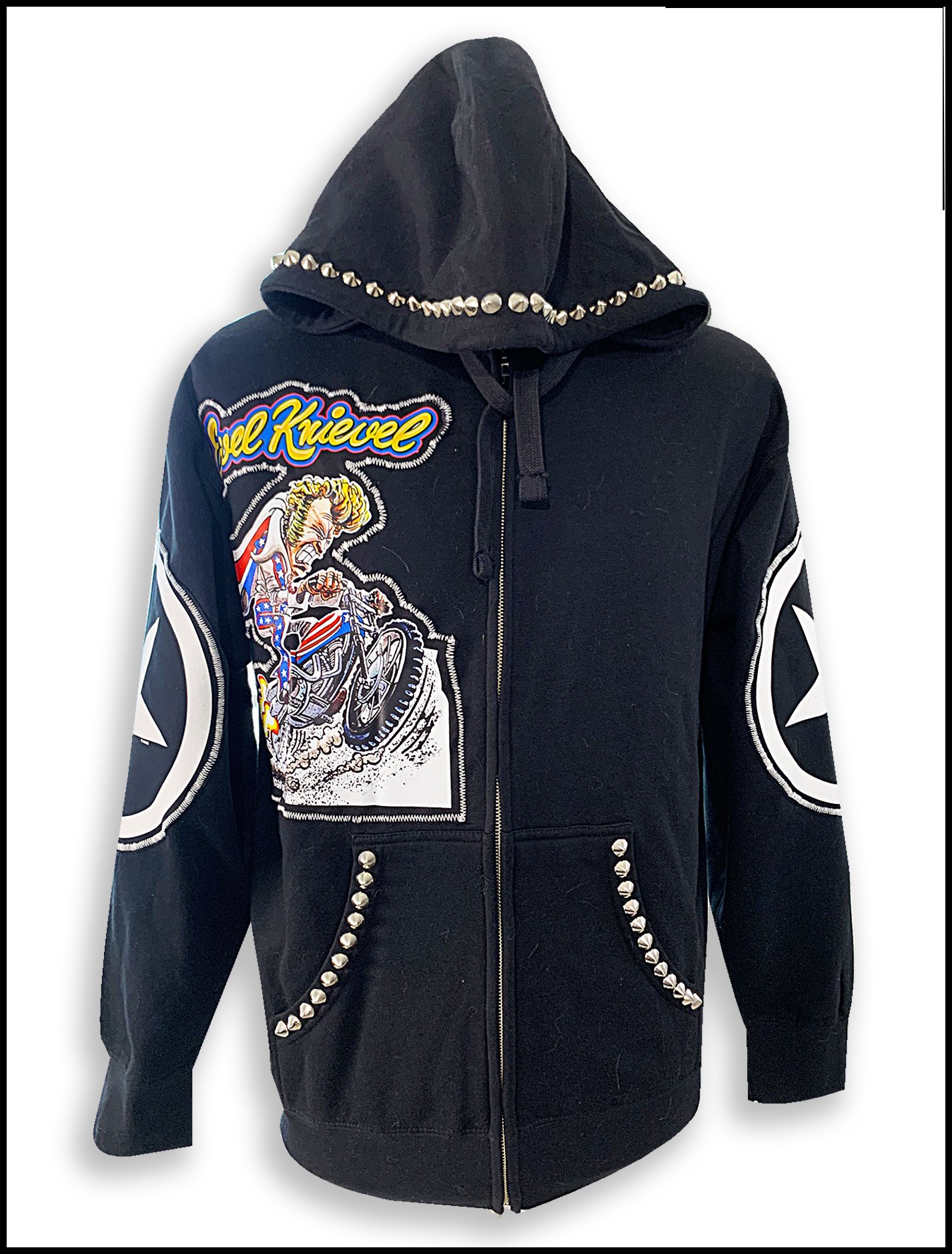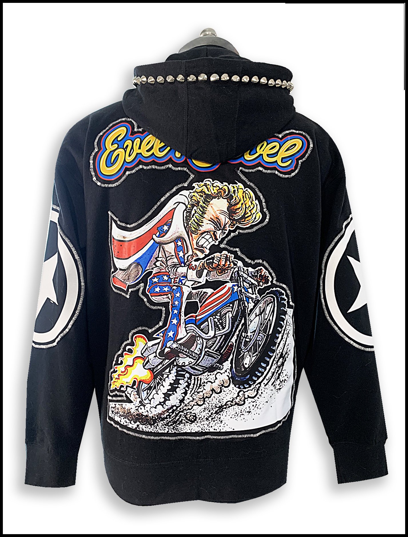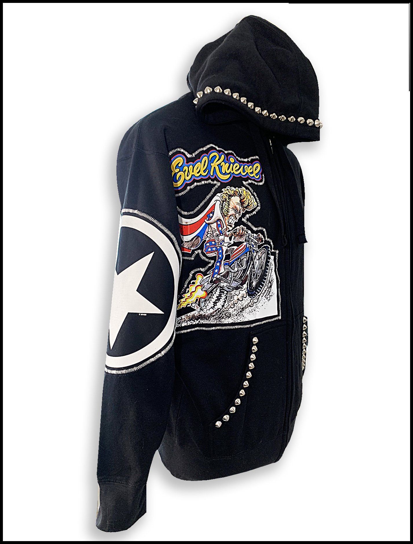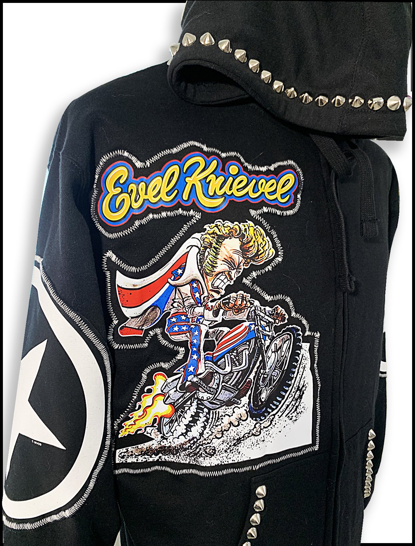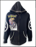 We're dropping some all new designs just in time for that perfect gift with a little deconstructing of some old favorites. There is a very limited supply so get in where ya fit in..This hoodie feature that ballistic Frankenstitching along with the coolest hand studding around !